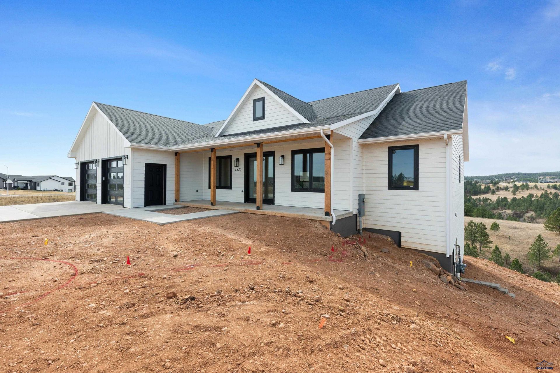 Listed by Tim Holt, Sun Real Estate, 605-415-3617. Luxury Living in the Making - 4825 Pikes Peak Ct, Rapid City, SD Nestled in a sought-after neighborhood near the golf course, this under-construction luxury home offers an exceptional opportunity to own a brand new residence with breathtaking views. Designed for comfort, style, and modern living, the open-concept floor plan features three spacious bedrooms and two elegant bathrooms on the main level. Enjoy stunning vistas from the great room, dining area, and primary suite, with large windows that capture the beauty of the surrounding hills. The chef-inspired kitchen will boast premium finishes, quality cabinetry, and ample workspace"?perfect for both everyday living and entertaining. The unfinished lower level offers endless possibilities for customization"?add bedrooms, a family room, or your dream entertainment space. This space has high ceilings with a covered deck that provides the perfect spot to relax and soak in the panoramic scenery. With its prime location, exceptional design, and unbeatable views, 4825 Pikes Peak Ct is a rare find for those seeking luxury and lifestyle in Rapid City. Completion timeline and finishing options available for early buyers.